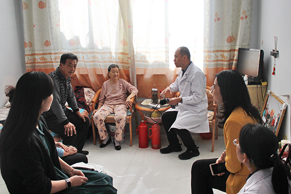 在省派第一书记张立、张光成、高凯、王坤、李洪刚的陪同下,专家们来到刘家下洼村的建档立卡贫困家庭和行动不便的患者家里,为村民进行上门查体服务,对村民生活方式和健康状况进行评估,并开展健康教育和生活方式指导。80多岁的李奶奶激动地说:“感谢潍坊医学院的专家,感谢俺们村的第一书记,我身体不好,出门不方便,你们还专门到家里来给我检查,太谢谢了。”