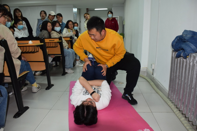 疼痛诊疗协会负责人为志愿者们讲授了康复按摩技巧以及突发事件现场应对技巧,并现场操作示范,通过各种不同的手法,对肩部、背部、腰部、臀部、大腿及小腿的肌肉进行按摩缓解肌肉的酸痛和紧张。之后志愿者们根据所讲内容进行了实践练习。