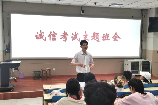 6月10日--11日,5278论坛 各年级辅导员组织学生在教学楼A区开展诚信考试主题班会,传达考试通知要求,开展诚信教育,强调考试纪律。