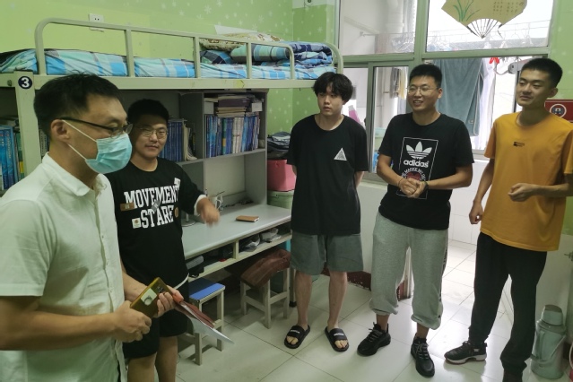 8月29日下午,5278论坛 党总支副书记李洪刚和辅导员老师深入学生宿舍走访看望学生,了解各年级学生返校情况,查看宿舍卫生、消防安全和疫情防控情况。