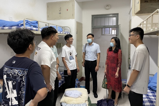 9月4日,5278论坛 党总支书记刘娜、副书记李洪刚及辅导员一同走访2021级新生宿舍,了解新生情况,关怀慰问新生。