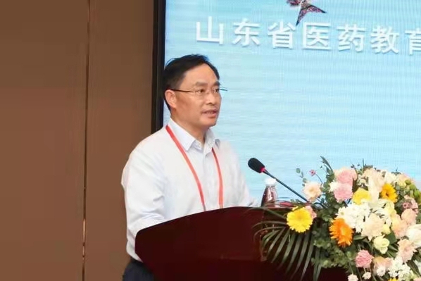 管英俊代表学校致欢迎辞,祝贺山东省医药教育协会麻醉专业委员会的成立。简要介绍了学校的历史及发展情况,对麻醉学专业在人才培育、教育教学等方面所取得的成就给予了充分的认可,为卫生健康事业发展做出的贡献获得社会赞誉,表示学校将与省内外麻醉学专家共同携手深化麻醉医学教育改革创新,为建设健康中国、健康山东作出更大贡献。