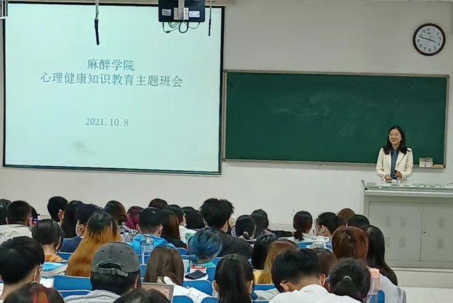 10月8日下午,5278论坛 党总支书记刘娜走进教学楼A304,为2019级本科生开展了“正确应对压力与挫折”心理健康教育主题班会。