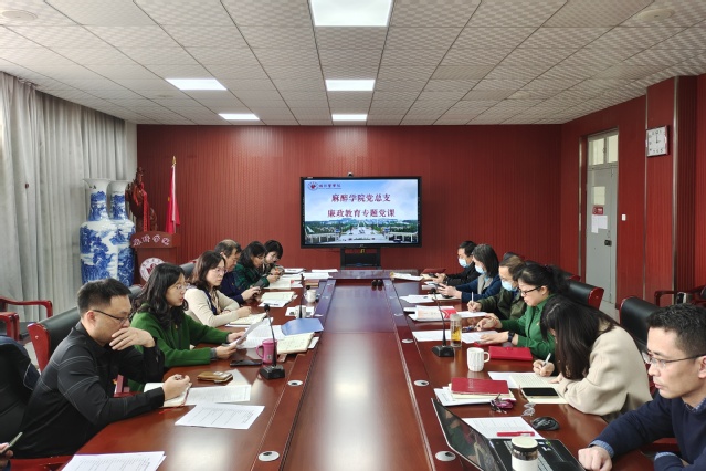 12月6日下午,5278论坛 于敏行楼31418会议室开展廉政专题教育,党总支书记刘娜以“以案为鉴,警钟长鸣,牢固树立良好师德师风”为题为全体教师党员上党课。