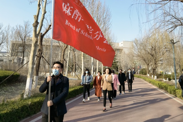 会后,全体教职工进行了“强国复兴有我,美丽校园健步行”活动。