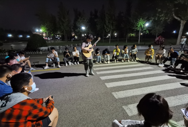 活动伊始,同学们以班级为单位依次作自我介绍,阳光自信、热情大方的展现自己,分享家乡的历史文化、风土人情,从云南腾冲到黑龙江大庆,从宁夏银川到山东威海,天南海北的新同学,为了同一个梦想相约麻醉,进一步增强了彼此的相互了解,增进了同学们的感情。随后,各班以独唱、合唱、舞蹈、相声等节目将联欢会的氛围带入一个又一个高潮。“夜空中最亮的星,请指引我靠近你”,何正霖同学倾情演唱《夜空中最亮的星》,歌声嘹亮,宛转悠扬,感谢遇见,令人回味;冯丽萍同学带来的的跆拳道表演,一招一式尽显舒展豪放、洒脱自如,彰显出跆拳道的无穷的魅力和深刻的内涵;张建文和陈正阳同学俯卧撑比赛,动作标准,展现出青春的活力与坚韧不拔的毅力,激发起在场同学们的运动热情;李卓群同学吉他弹唱,一首《成都》,引起在场同学的共鸣,遥寄思乡之情,祝愿家国美好......活动现场穿插着击鼓传花、丢手绢等游戏互动环节,同学们沉浸在热闹欢乐的节日氛围中,精彩的节目赢得了阵阵掌声,热闹非凡。皓月当空时,同学们纷纷拿起手机记录下这月圆时刻,分享给身边的朋友或是远方的家人,寄予美好的祝愿。