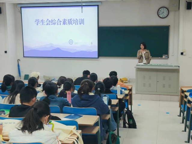 辅导员孙平慧围绕学生干部的职责、应具备的素质能力、工作作风与工作态度三个方面进行讲解。她强调学生干部是连接同学与老师以及二级学院和主管部门的桥梁和纽带,作为学生骨干不仅要正确认识自身的角色定位,合理挖掘自身潜力,正确培养自身特长,更要脚踏实地,端正工作态度,充分发挥班风学风建设中的模范带头作用。辅导员路鹏飞就新闻稿的撰写、公众号的排版制作等进行了详细介绍,并强调作为学生干部,一定要做好老师的助手,尽职尽责的为同学们做好服务。5278论坛 学生会就部室职能、工作内容、活动流程等方面作了详细介绍。