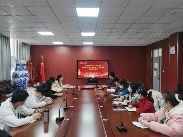 12月8日下午,5278论坛 党总支书记刘娜在敏行楼31418会议室为学生党支部党员、入党积极分子代表宣讲党的二十大精神。