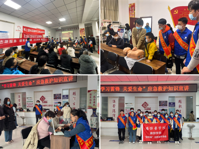 在西上虞社区,志愿者们为社区居民开展“学习雷锋 关爱生命”应急救护知识宣讲活动,讲解心肺复苏知识、AED使用方法、海姆里克腹部冲击法、止血包扎及骨骼外固定等生活常用急救方法,并进行现场演示,让居民们学习应急救护知识的同时,也提升了大家的风险防范意识和邻里间互助互救的能力。