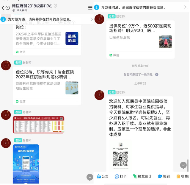 就业岗位勤推送。学院充分利用2023届毕业生通知群,不间断推送就业岗位信息。通过发动专任教师、校友等资源,为毕业生拓宽就业渠道,增加就业机会。结合毕业生就业、考研需求,精准推送考研复试技巧、简历制作模板等有效信息,做实做细就业服务。
