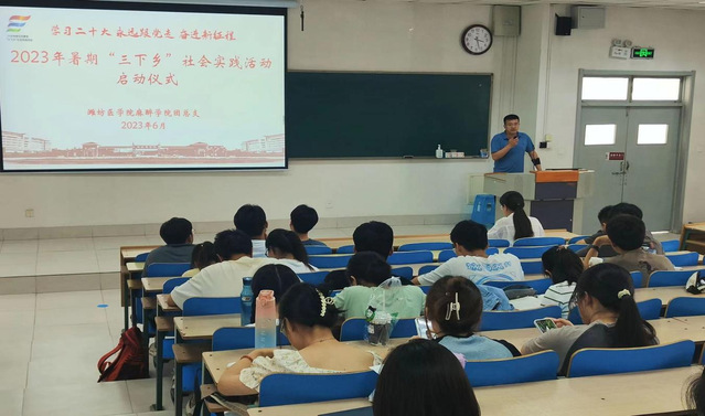 启动仪式上,夏德涛作动员讲话,希望同学们要在社会实践的大课堂中认识社会、了解国情,切实帮助当地解决实际问题,在服务中提高自身素质;要紧扣主题,扎根基层服务人民,抓住实践机遇,为国家建设贡献青春和力量;要用好实践课堂,在实践中受教育、长才干、做贡献,勇于在艰苦困难中锤炼自我、完善自我、超越自我,努力成长为担当重任的时代新人。赵静介绍了此次暑期“三下乡”社会实践活动的具体内容和要求,并提醒同学们在做好个人防护,保证自身安全的前提下参加社会实践活动。随后志愿者们签署了《潍坊医学院大学生暑期“三下乡”社会实践活动个人安全责任承诺书》。