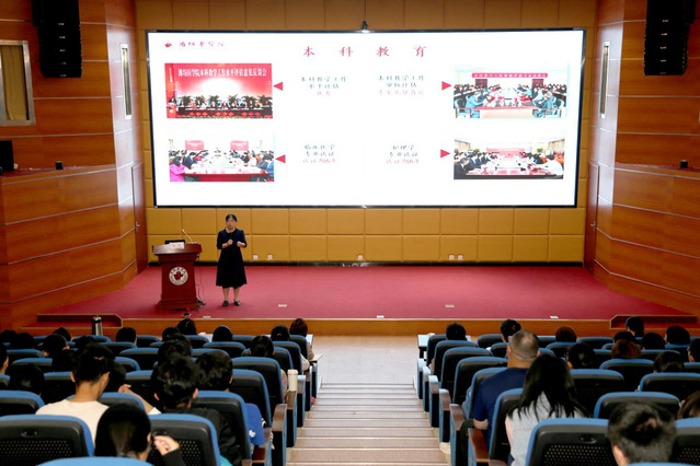 成敏对2023级麻醉学专业新生加入潍医大家庭表示热烈欢迎和祝贺,她围绕学校办学历史与教学发展情况、麻醉学专业发展历程、麻醉专业人才培养和如何开启大学生活四个方面展开了深入浅出的讲解,结合抗疫插管小分队、地摊医生张军桥等麻醉优秀学子的感人事迹,极大地提升了新生的专业认同感与自豪感。成敏表示潍坊医学院麻醉学专业历史悠久、成绩斐然,拥有国家一流专业建设点和一流本科课程,所培养人才适应国家需要、深受社会认可,勉励新生珍惜韶华、励志勤学、开阔视野、锤炼自我,并提出三点要求:一要厚植家国情怀,塑造正确三观,做坚守信仰的奋斗者,让青春在实现中国梦伟大征程上绽放绚丽之花;二要提高道德修养,苦练专业技能,最终成长为德智体美劳全面发展的高素质应用型麻醉医学专门人才;三要锤炼品格,保持身心健康,注重学习实效,根据自身特点做好学业规划。