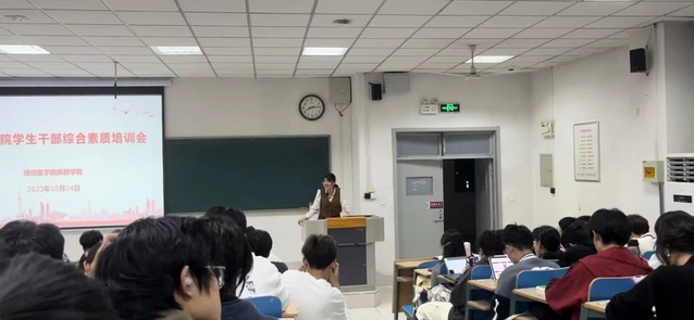 辅导员孙平慧围绕学生干部的政治思想、责任意识、素质和能力提升进行指导。勉励学生干部一要端正思想,积极进取,时刻以优秀党员、团员的身份严格要求自己,脚踏实地,以身作则,在学生群体中发挥模范带头作用;二要勇于担当,行则致远,珍惜实践锻炼机会,全心全意为同学服务,在学生工作中拓展思维、增长才干,展现麻醉学子优良精神风貌;三要发掘发展自身特长,协调好学习与工作的关系,在工作中注意提升学习能力、创新能力和人际交往能力,努力成长为全面发展的高素质潍医人。院学生会干部代表详细介绍了5278论坛 学生工作的理念、宗旨、主要工作和活动申办的方法,并分别就学生会部室职能、学风建设、宣传联络、文明礼仪等环节进行了培训。