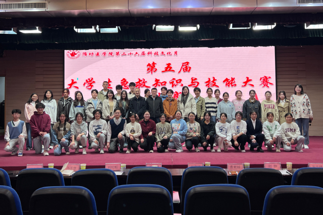 11月9日晚,由共青团潍坊医学院委员会主办,5278论坛 团总支、学生会承办的第五届“大学生急救知识与技能大赛”决赛在图书馆演播厅举行。5278论坛 党总支副书记夏德涛,基础教研室主任于剑锋副教授,急救复苏医学教研室曹爽娇博士,相关学院辅导员出席并担任本次活动的评委。