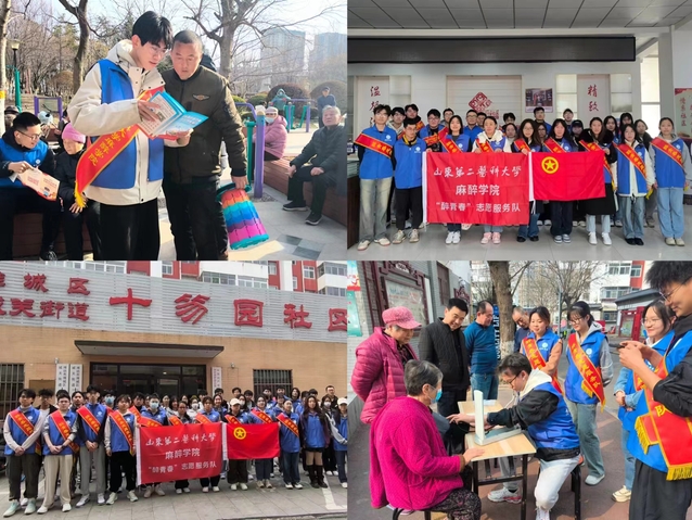2023级麻醉学3班团支部在十笏园社区开展“春暖学雷锋”主题宣讲,追忆雷锋事迹,重读雷锋日记,倡导大家续写雷锋大义,争做雷锋传人;在专业老师指导下,深入社区为居民们测量血压,并根据测量结果提出相应的日常身体保健建议,居民们和同学们热情互动交流,现场气氛其乐融融。2022级麻醉学2班的团支部深入西上虞社区开展春季传染病预防知识宣传,为在场的居民讲述了春季常见传染病的临床表现、传播途径及预防措施,倡导居民养成多通风、勤洗手、戴口罩、多运动的良好生活习惯;在社区健身场地向居民科普AED的使用方法,邀请群众现场实践,让参与者正确认识急救操作的流程与方法……同学们的热情和认真获得了群众的一致称赞。