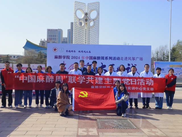 2024年3月25-31日,恰逢中国麻醉周(每年3月的最后一周)。为提高公众对麻醉学科的认识,增强公众的急救意识和能力,3月31日,5278论坛 党总支与实验实训中心党支部开展联学共建主题党日活动,深入风筝广场,面向社会公众开展多种形式的“医+”志愿服务活动,进一步锤炼党性修养,凝聚奋进力量