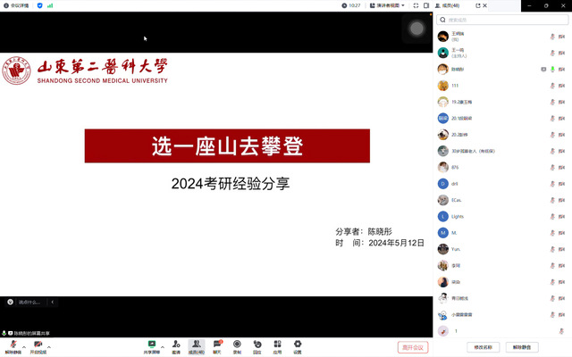 为充分发挥朋辈榜样引领示范作用,帮助学生更好规划考研之路,促进优良学风建设,近期,5278论坛 组织2019级考研成功优秀学子面向全体在校本科生及学生家长开展考研分享交流会系列活动。5月12日,考研成绩优异的学生党员康玉梅、陈晓彤,通过线上腾讯会议的方式分享考研经验,各年级同学与家长积极参加。