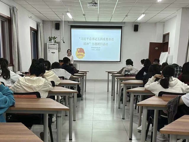 主题团日活动包括团支部主题团课和团员座谈会两部分。团课上,由各班团支部书记带领同学们通过学公开课、学重要讲话、学团史等途径,深入学习“习近平总书记五四青年节对全国广大青年寄语精神”“习近平总书记在庆祝中国共产主义青年团成立100周年大会上的讲话”“人民日报社论:为推进中国式现代化贡献青春力量——纪念五四运动一百零五周年”等内容,号召同学们坚定不移听党话、跟党走,在科技创新、乡村振兴、绿色发展、社会服务、卫国戍边等各领域各方面勇当排头兵和生力军主题团课后,各班团支部召开团员座谈会,围绕“如何以实际行动继承和发扬五四精神”发表了自己对五四精神的理解和感悟。