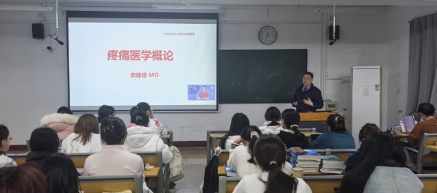 安建雄教授结合自身临床经验和国际访学经历深入浅出地讲解了疼痛诊疗学和麻醉创新诊疗学科的发展历程,注重思政引领,通过我校快速抗抑郁、睡眠障碍干预和三氧临床应用等展示了麻醉学科在消除患者病痛的关键作用和社会意义;同时紧扣国内外科研成果与转化,强调了创新意识的重要性,激励同学们积极参与科研探索与创新。