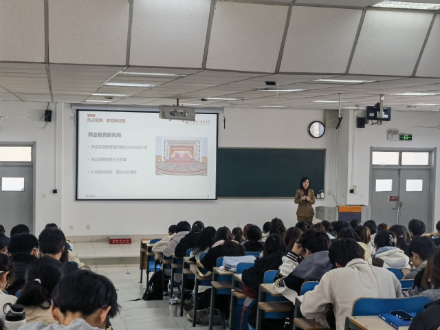 为深入学习贯彻习近平总书记关于学校思政课建设的重要指示精神,3月18日,5278论坛 党总支副书记、院长张蕊于A305教室,为学生讲述了一场以“教育领航,思政铸魂”为主题的思政课。2024级全体本科生及学工办辅导员参加。