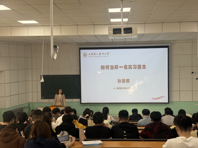 会上,孙丽娜以《如何当好一名实习医生》为主题,为学生详细介绍了各实习医院基本情况,引导学生在实习阶段要自觉树立以病人为中心的思想,做到“六勤”(勤动脑、勤动眼、勤动嘴、勤动手、勤动腿、勤做事),学会处理实习与考研就业之间的关系孙丽娜着重强调了实习期间的安全与纪律,鼓励同学们珍惜实习机会,用积极健康、乐观向上的心态面对实习阶段的学习与生活。此外,孙丽娜就新修订的麻醉学专业毕业实习大纲进行了解读,并对实习轮转、实习任务、考核鉴定等方面内容作了详细说明勉励同学们在实习期间勇于探索、积极实践努力提高自身专业能力,圆满完成实习任务