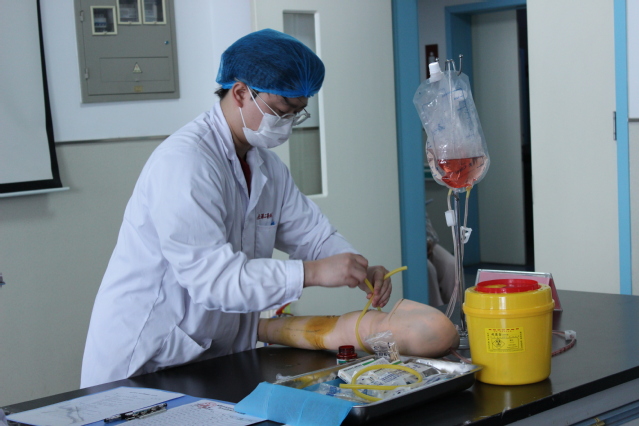 考试对标国家执业医师资格考试和全国临床医学(本科)水平测试考试大纲要求,采用多选题理论考试(MCQ)和客观结构化临床考试(OSCE)相结合的方式,理论考试模拟临床医学(本科)水平测试,采用计算机考试方式;客观结构化临床考试设置临床思维考核和技能操作考核两大模块,涵盖病史采集、心肺复苏术、外科手消毒术、简易呼吸器使用、吸氧术、戴无菌手套、穿脱手术衣、穿脱隔离衣、静脉穿刺术等多项实操考核内容,全面检验其临床思维能力和规范操作水平。