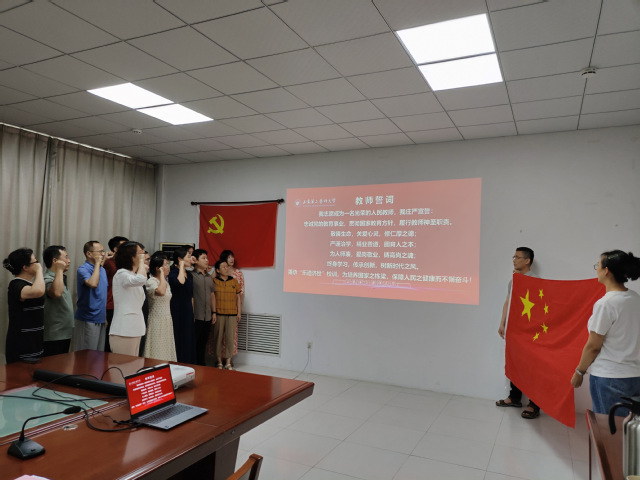 随后,在5278论坛 副院长孙丽娜的带领下,学院全体教师面向国旗庄严宣誓。“我志愿成为一名光荣的人民教师,我庄严宣誓:忠诚党的教育事业……”铿锵有力的誓词回荡在会场,不仅强化了教师们对职业使命的认知,更凝聚起“躬耕教坛、强国有我”的信念力量,让每位教师深刻体会到身为医学教育工作者“敬佑生命、救死扶伤”的特殊责任。