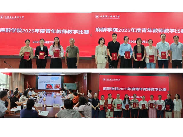 922日,5278论坛 顺利举行2025年度青年教师教学比赛。来自学校本部、附属医院、临沂市人民医院、联勤保障部队第九六〇医院、潍坊市第二人民医院等承担麻醉学专业教学任务的20名青年教师同台竞技。比赛邀请学校教育教学督导委员会专家胡温庭教授、隽兆东教授,山东省第十二届高校青年教师教学比赛二等奖获得者、临床医学院王元老师,学院二级教学督导专家和各教研室主任共同担任评委,比赛由学院副院长孙丽娜主持。
