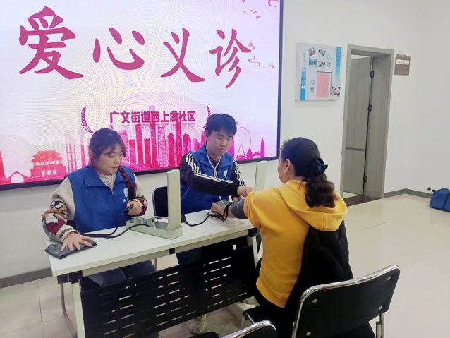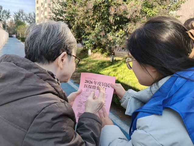 随后,志愿者们转场至社区旁的鲁班园,同步推进三项便民服务:一是发放防诈骗与医保缴纳主题传单,结合近期高发的“养老投资”“医保停缴”类骗局案例,向居民讲解识别技巧与医保缴费的时间节点、线上操作流程;二是开设临时血压检测点,为老年居民逐一测量血压,并记录数据、提醒健康注意事项;三是现场解答居民关于日常健康、医保政策的疑问,实现志愿服务“零距离”。