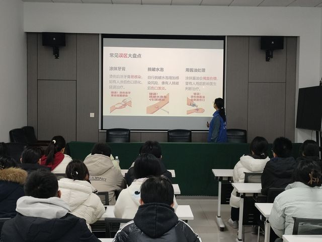 活动首站聚焦西上虞社区,志愿者们以“理论+演示”形式开展烫伤急救宣讲:从“涂牙膏、挑水泡”等常见误区的纠正,到“冲、脱、盖、送”四步法的标准操作,结合生活案例生动解析不同程度烫伤的处理要点,现场邀请居民模拟操作,切实提升应急处置能力。